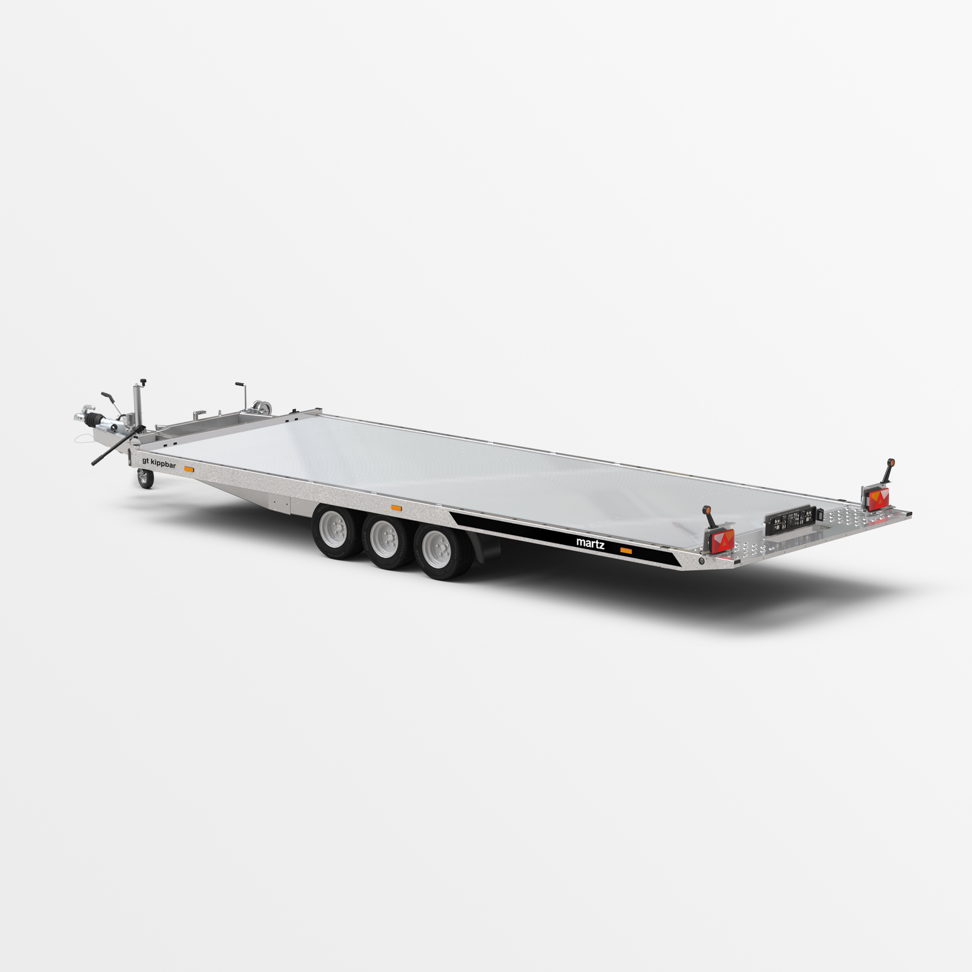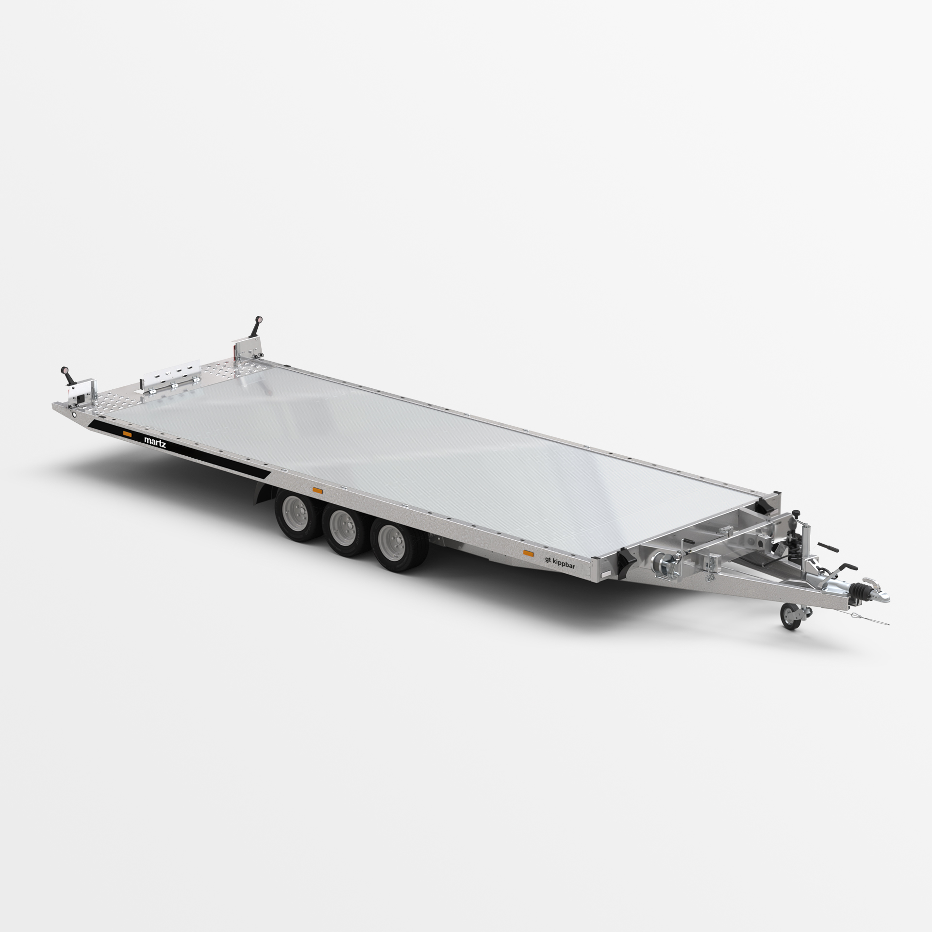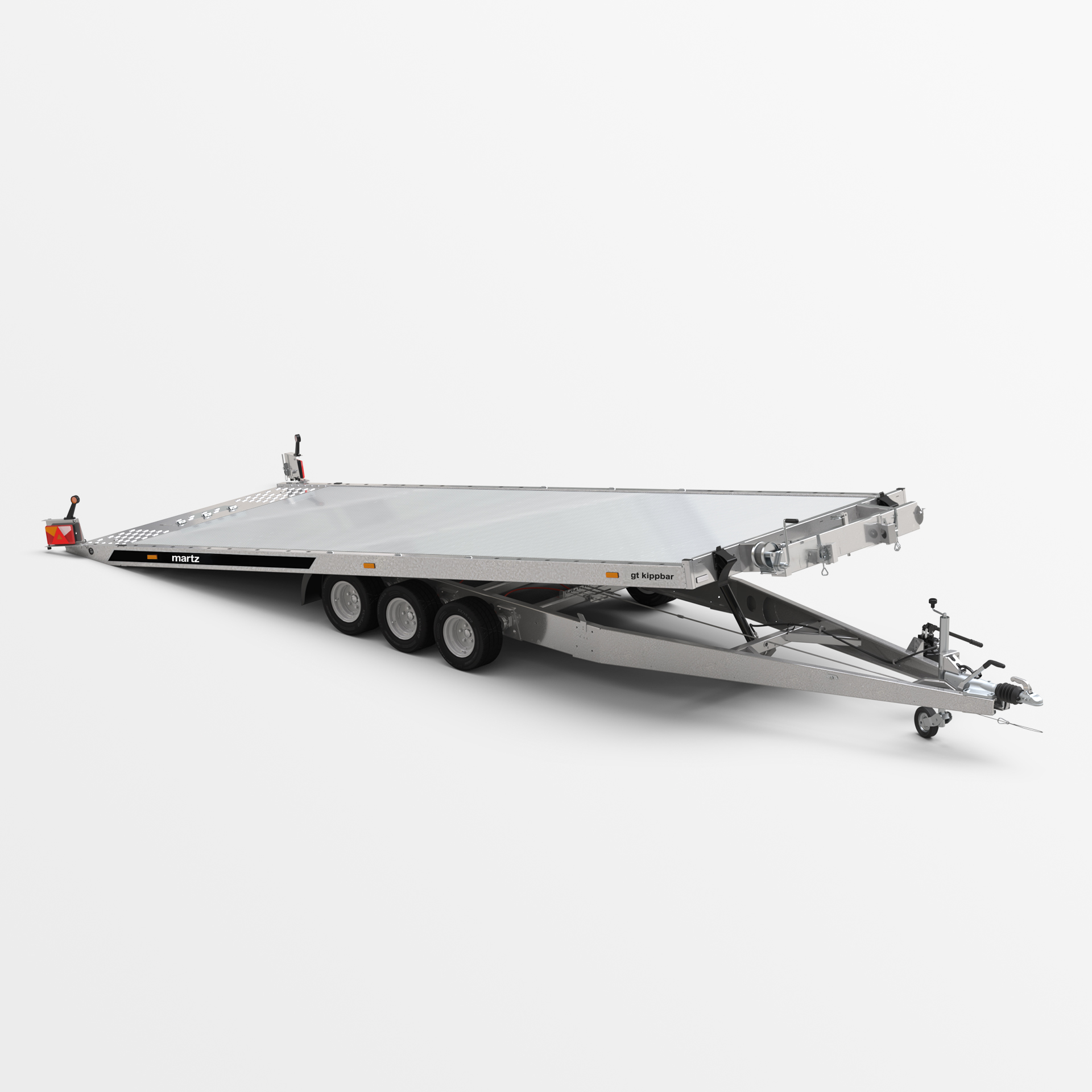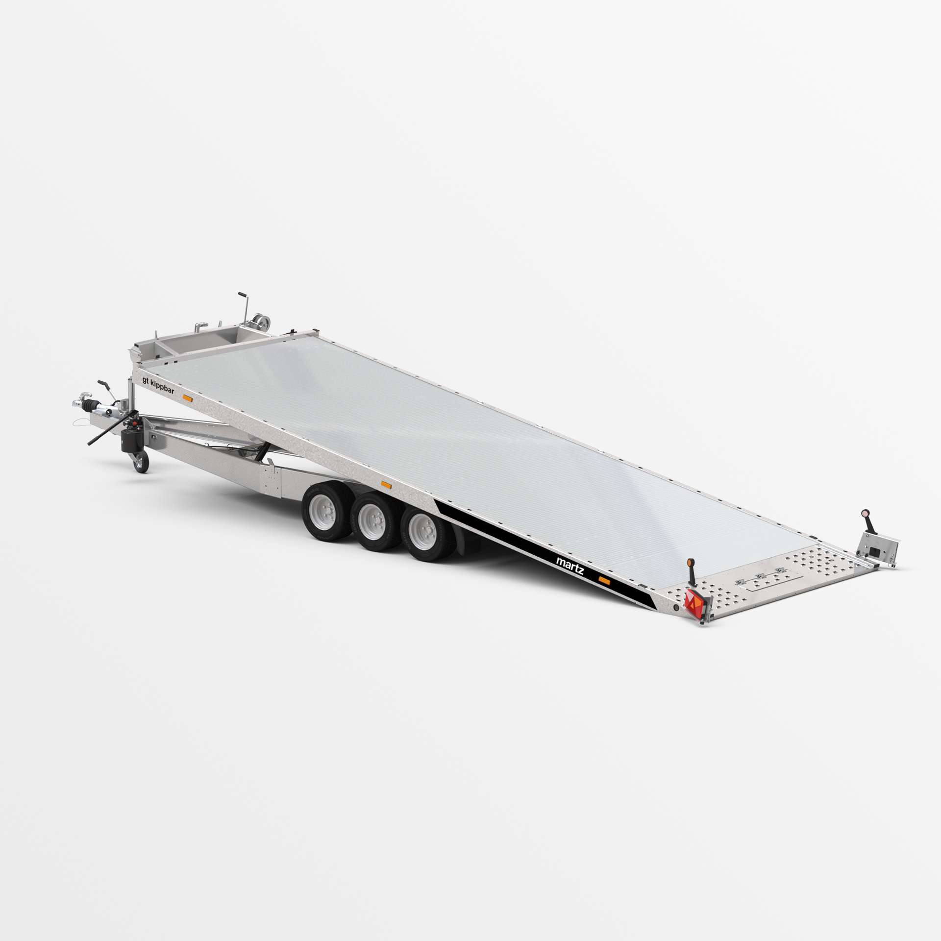PKW-Anhänger mit Kippfunktion der Transportfläche. Der eingesetzte Hydraulikzylinder sorgt für eine reibungslose und leichte Bedienung während des Beladens. Der niedrige Böschungswinkel von 11° erleichtert das Beladen von Fahrzeugen mit geringer Bodenfreiheit. Der stabile Rahmen aus geschlossenen Profilen und die verstärkten Fahrgestell- und Deichselelemente sorgen für Sicherheit und Langlebigkeit. Seitenträger mit Löchern und ein Boden aus Lohr-Blech erleichtern dank der dichten Lochung die Sicherung der transportierten Fahrzeuge. Zahlreiche Möglichkeiten der Befüllung, wie zum Beispiel Alu-Wellplatte auf Sperrholz, Alu-Wellplatte oder Alu-Paneel, ermöglichen Ihnen die Anpassung des Anhängers an Ihre individuellen Anforderungen. Optional kann der Anhänger mit einer Voll-LED-Beleuchtung ausgestattet werden. Dies ist die perfekte Lösung für Unternehmen, die nach zuverlässiger Ausrüstung zum Autotransport suchen.