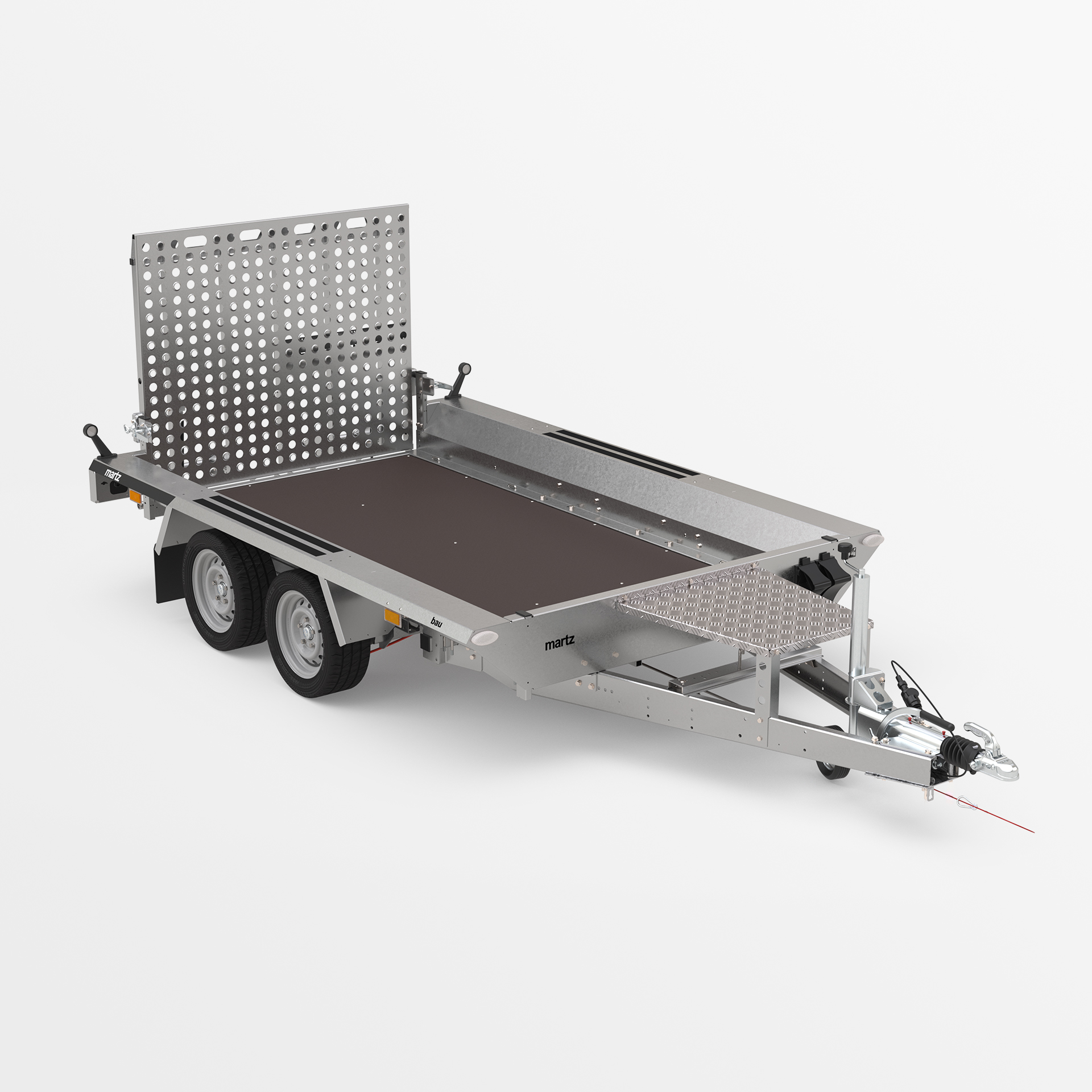 and support wheel with automatic folding as standard. Springs for easy lowering and raising of the overrun. Possibility of replacing the wide overrun ramp with