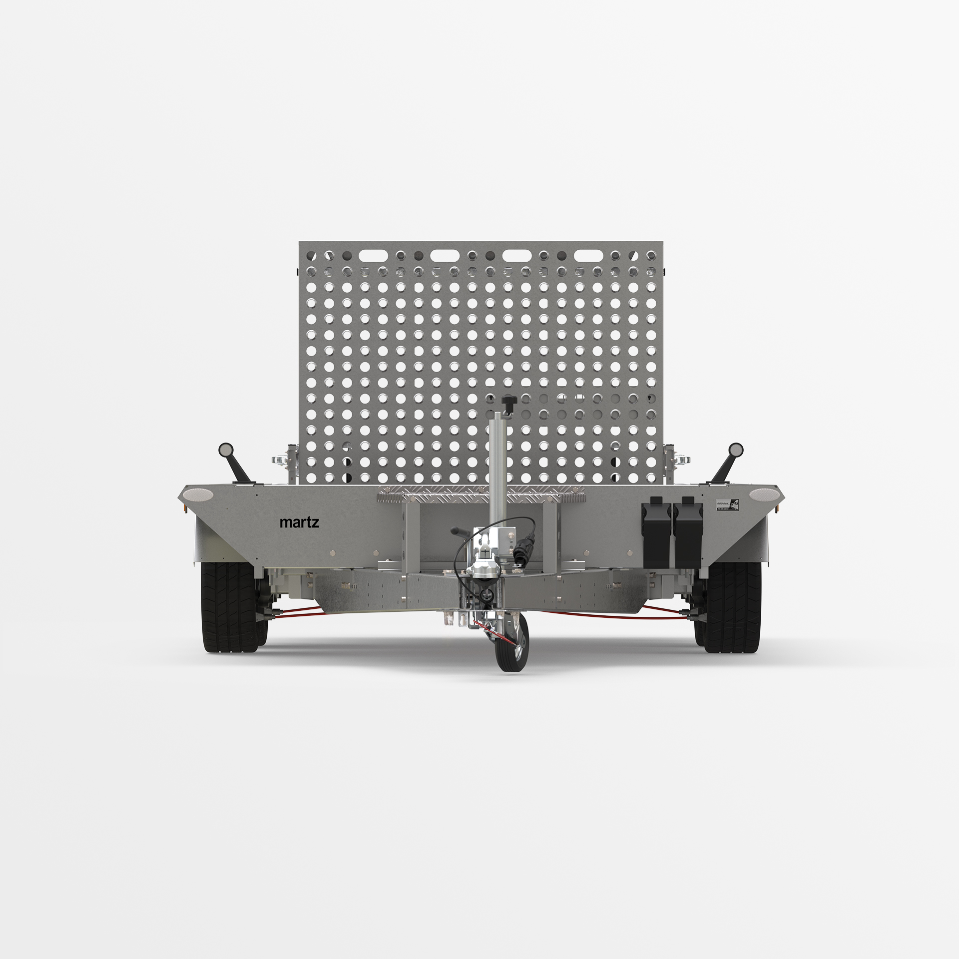 for cargo fastening to ensure the safety of transported goods. Extra sturdy V-type drawbar and supports to stabilize the overrun.