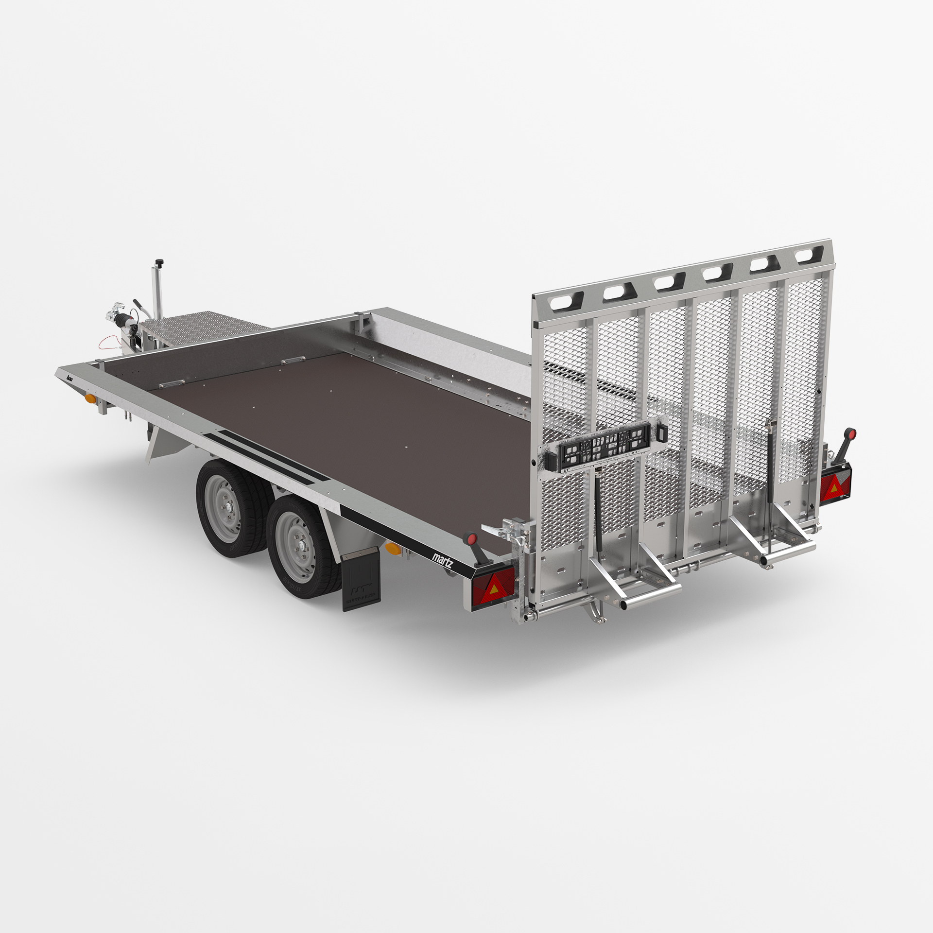 and support wheel with automatic folding as standard. Springs for easy lowering and raising of the overrun. Possibility of replacing the wide overrun ramp with