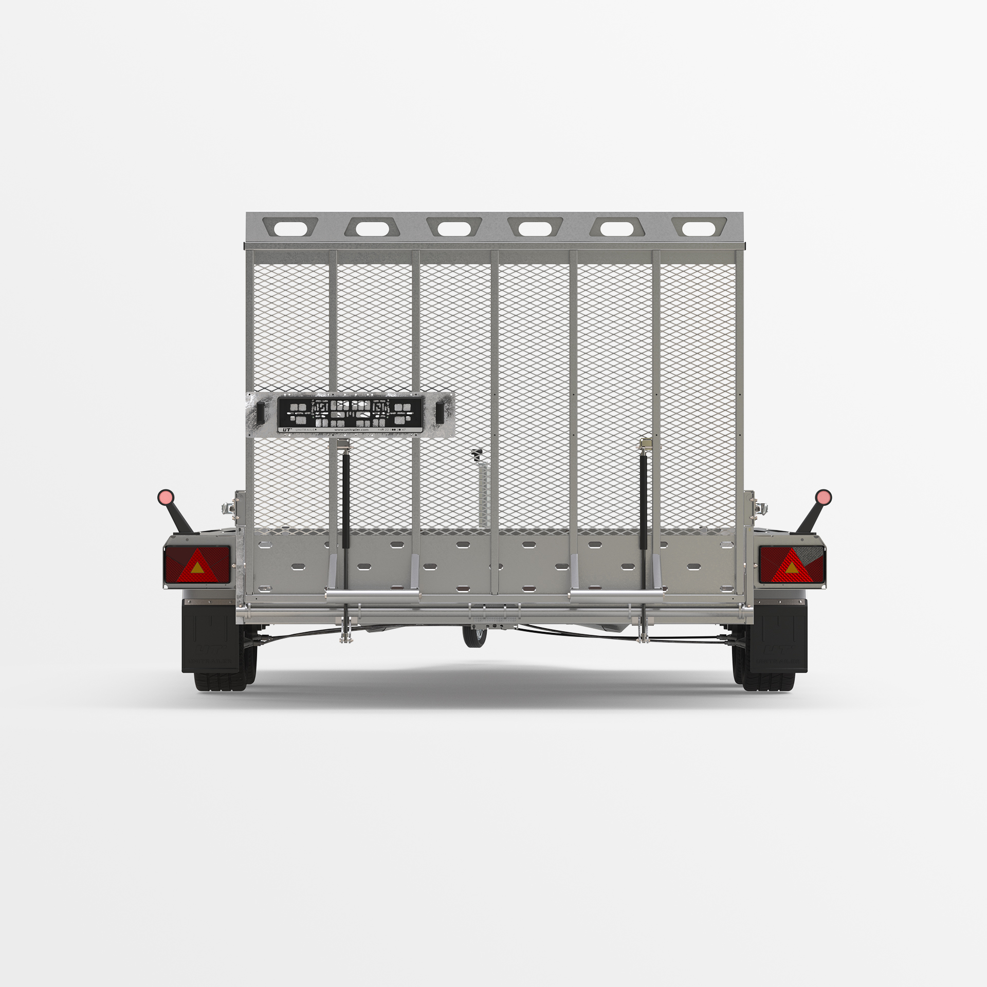 for cargo fastening to ensure the safety of transported goods. Extra sturdy V-type drawbar and supports to stabilize the overrun.