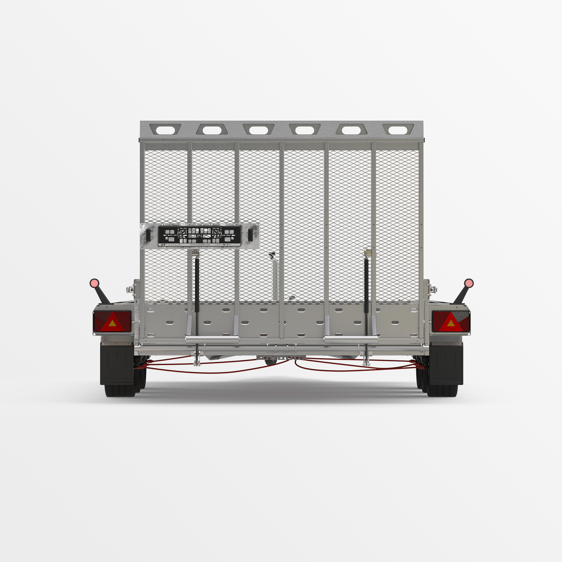 for cargo fastening to ensure the safety of transported goods. Extra sturdy V-type drawbar and supports to stabilize the overrun.