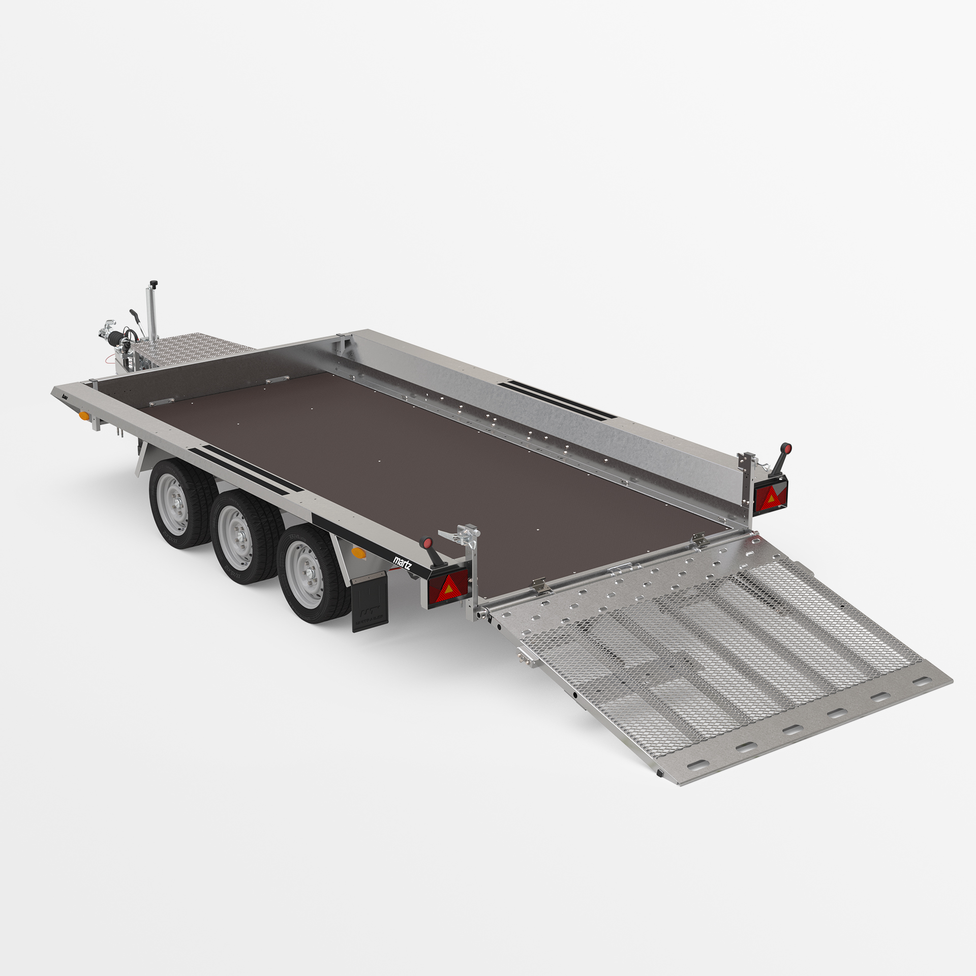 and support wheel with automatic folding as standard. Springs for easy lowering and raising of the overrun. Possibility of replacing the wide overrun ramp with