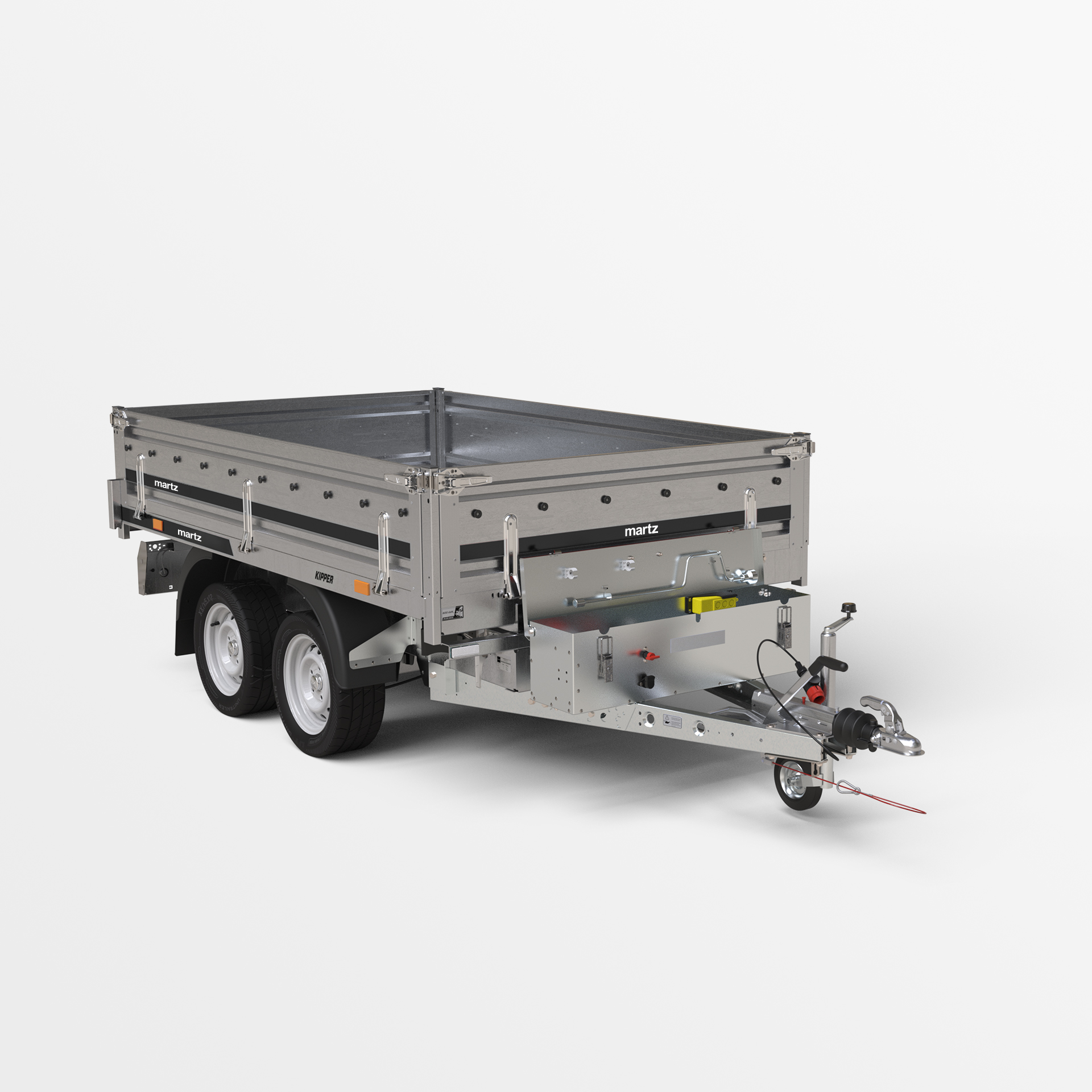 This tipper trailer model has a closed profile frame structure for added strength. It uses a 5-stage cylinder, which allows for a greater tipping angle (up to 50 degrees). Possibility of opening and dismantling all sides. A steel floor has been also added in the model.