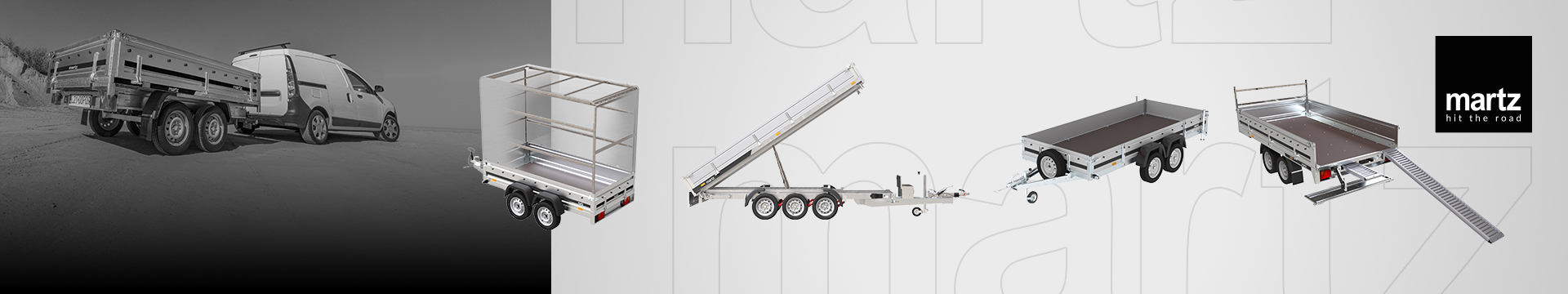 Les remorques Martz se distinguent par leur construction solide, leur durabilité et leur fonctionnalité, ce qui les rend parfaites aussi bien pour les utilisateurs privés que pour les entreprises. Nous proposons des remorques cargo légères, des remorques à un ou deux essieux, ainsi que des modèles adaptés au transport d'équipements ou de matériaux de construction.