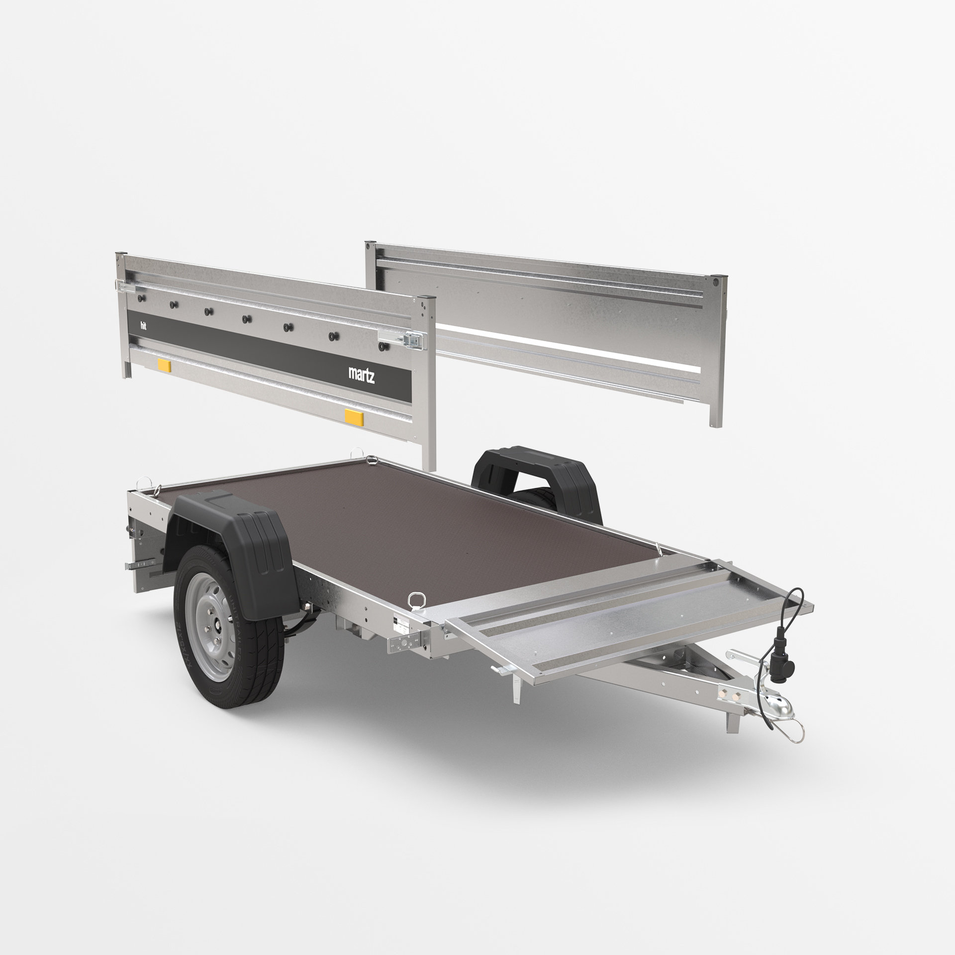 Remorque de transport conçue pour assurer un transport sécurisé de diverses charges. Grâce a des ridelles de 40 cm de hauteur et aux ridelles avant et arriere basculantes, le chargement et le déchargement sont rapides et pratiques. La structure soudée garantit une grande durabilité, tandis que le timon basculant améliore le confort d'utilisation. Les butées sur le châssis arriere assurent une position stable de la remorque sur sa ridelle arriere, ce qui lui permet d’occuper peu d’espace lors du stockage.