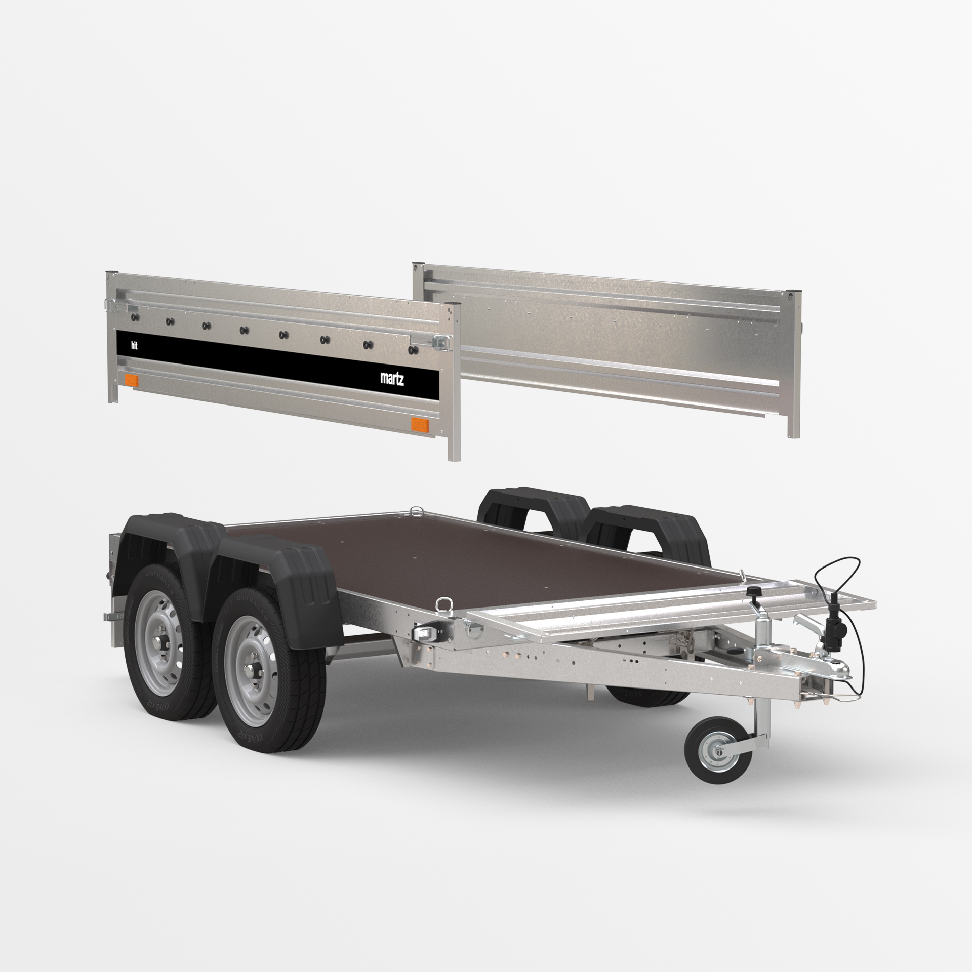 Remorque de transport conçue pour assurer un transport sécurisé de diverses charges. Grâce a des ridelles de 40 cm de hauteur et aux ridelles avant et arriere basculantes, le chargement et le déchargement sont rapides et pratiques. La structure soudée garantit une grande durabilité, tandis que le timon basculant améliore le confort d'utilisation. Les butées sur le châssis arriere assurent une position stable de la remorque sur sa ridelle arriere, ce qui lui permet d’occuper peu d’espace lors du stockage.