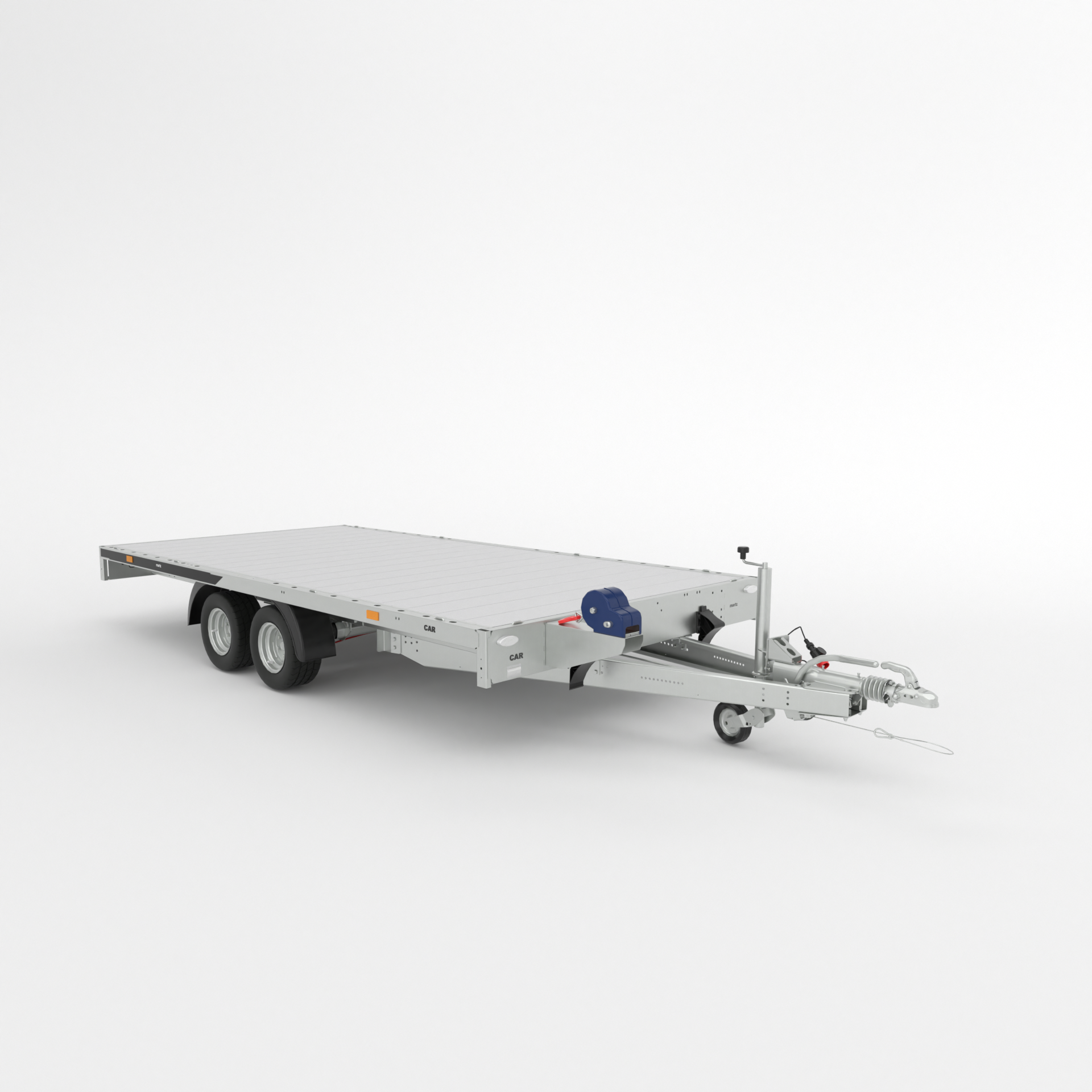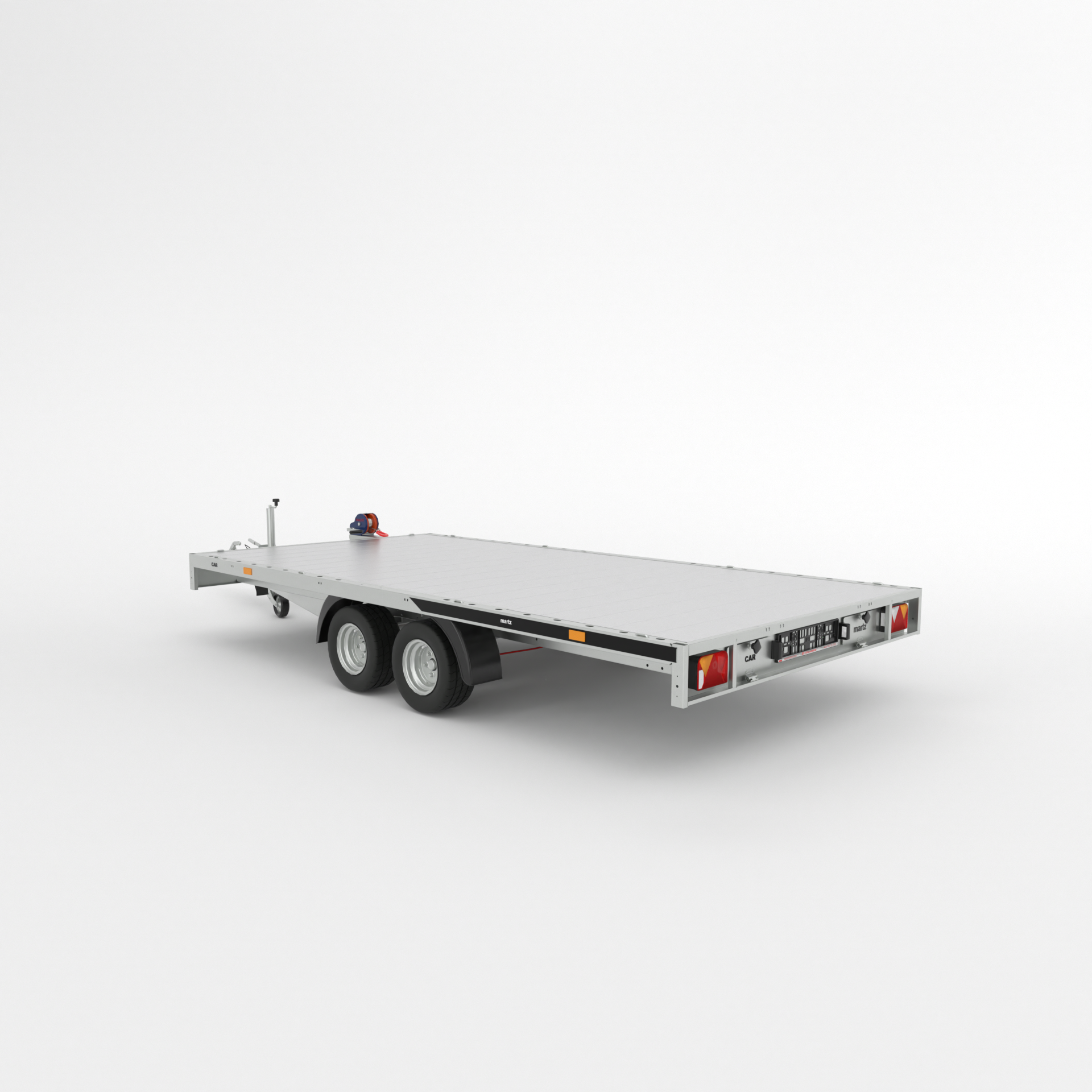 Pianale universale saldato per il trasporto di autovetture. Ragazze retrattili sotto il piano di trasporto. Nei longheroni, staffe per il fissaggio delle cinghie di trasporto. Puo essere dotato di fianchi in alluminio e di una rastrelliera con copertura.