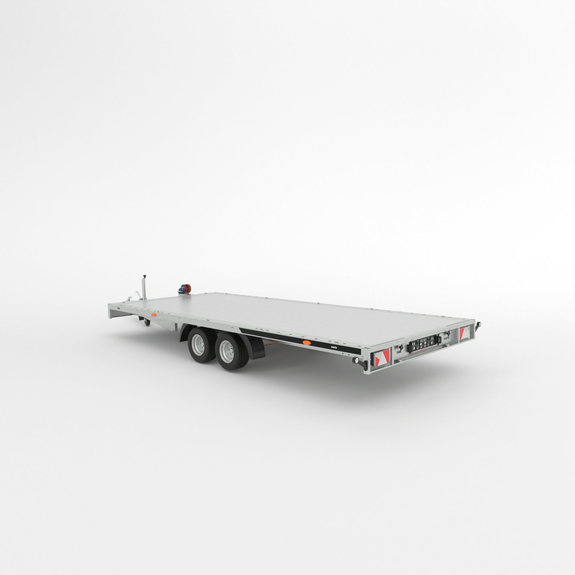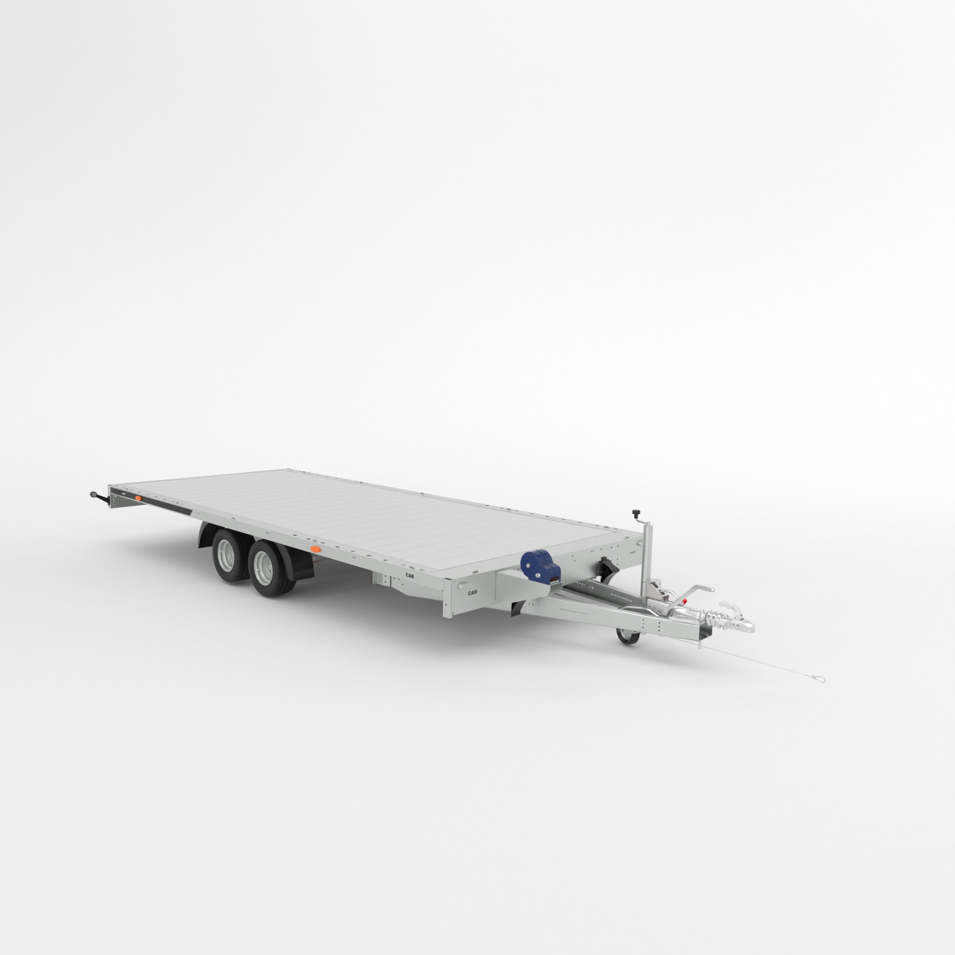 Pianale universale saldato per il trasporto di autovetture. Ragazze retrattili sotto il piano di trasporto. Nei longheroni, staffe per il fissaggio delle cinghie di trasporto. Puo essere dotato di fianchi in alluminio.