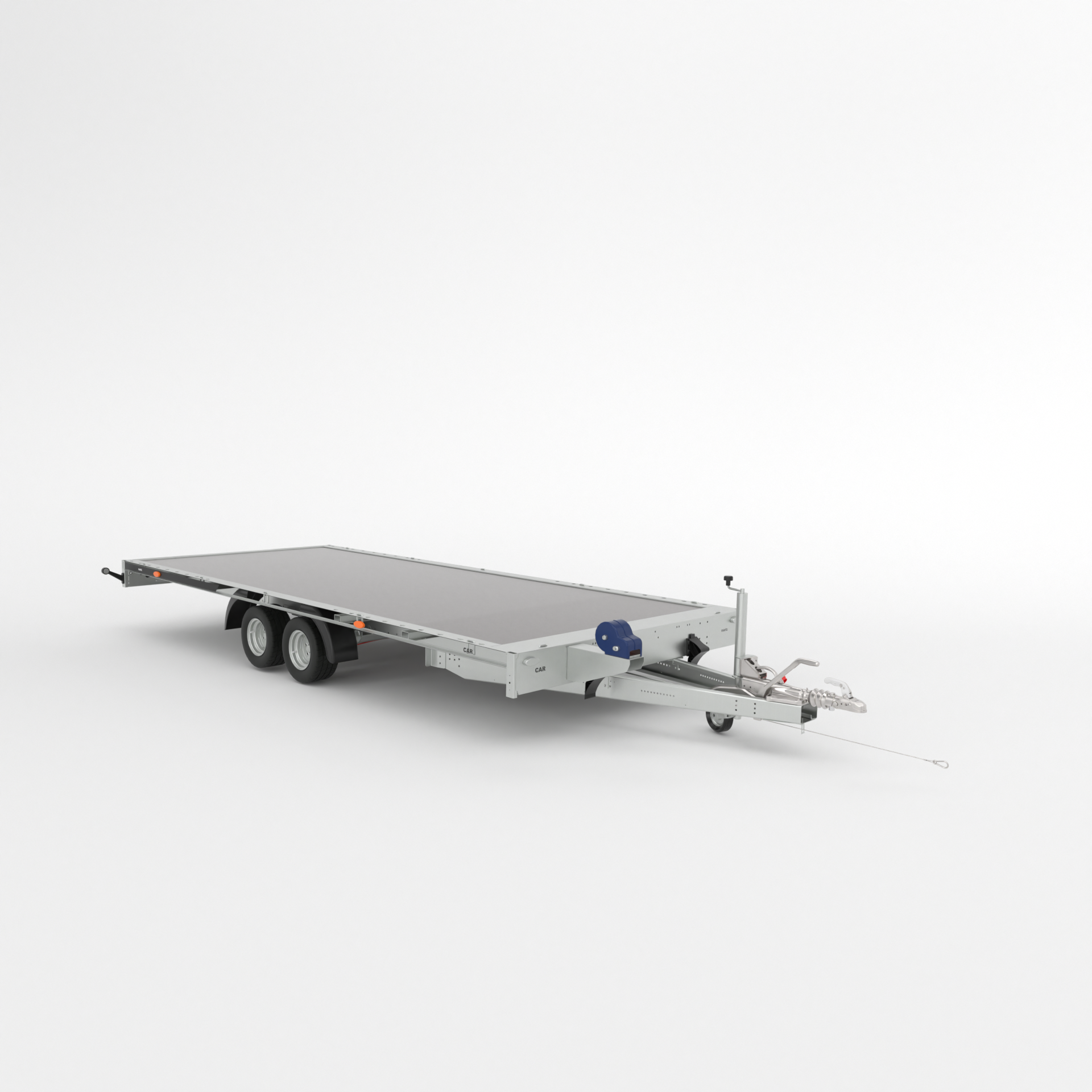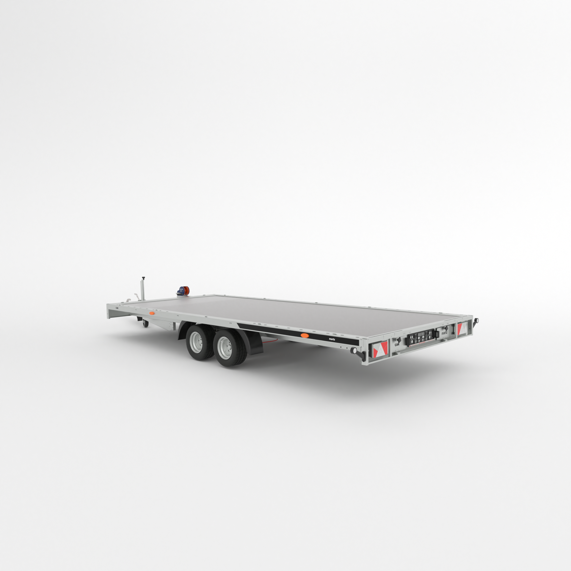 Pianale universale saldato per il trasporto di autovetture. Ragazze retrattili sotto il piano di trasporto. Nei longheroni, staffe per il fissaggio delle cinghie di trasporto. Puo essere dotato di fianchi in alluminio.