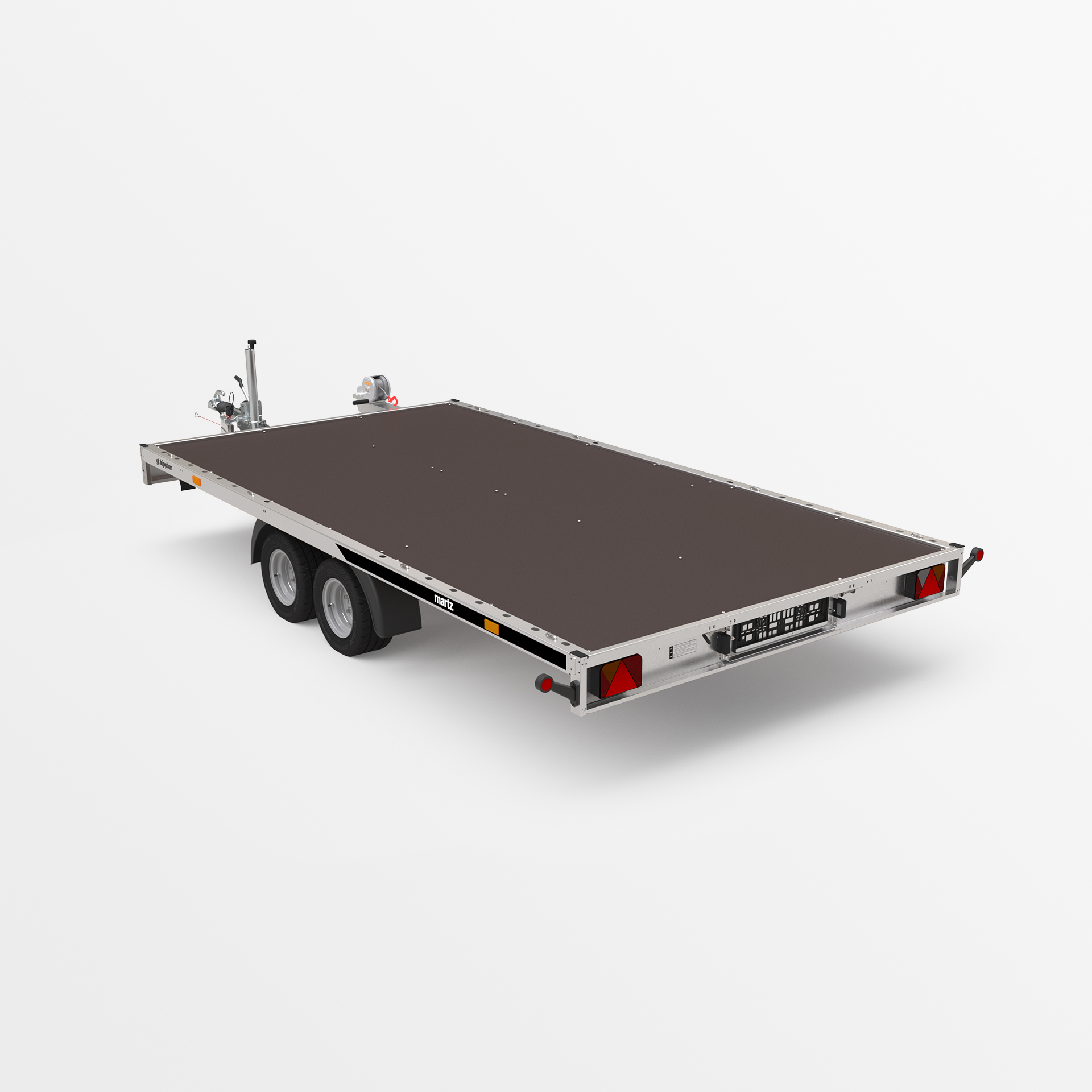 Przyczepa do przewozu samochodów z uchylną powierzchnią transportową. Niski kąt najazdu (6°) umożliwia łatwy załadunek pojazdów z niskim zawieszeniem. Najazdy są chowane pod powierzchnią transportową. Platforma transportowa została poszerzona o 109 mm, co zapewnia lepsze dopasowanie do różnych typów pojazdów. Dostępne warianty podłogi to blacha stalowa oraz aluminiowa – bez zastosowania sklejki. Gęstsze otworowanie fasolowe pozwala na wykorzystanie większej liczby punktów mocowania ładunku. Istnieje możliwość zamontowania burt aluminiowych oraz stelaża z plandeką.